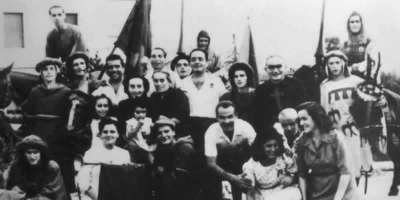 Da sempre colcitronese dentro, appassionata e focosa di giostra fin da giovane come da ventenne qui sotto (nella foto del '49), in piazzetta del Circolino con i suoi amici più cari Romeo, la Lole e Tonino.