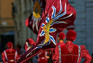 Pur tuttavia, io penso che in certi casi il giudizio estetico non possa affrancarsi completamente dalla valutazione storica: il corteo “militare” di Arezzo non può raffrontarsi – tout court, sic et simpliciter – con la “passeggiata” senese.