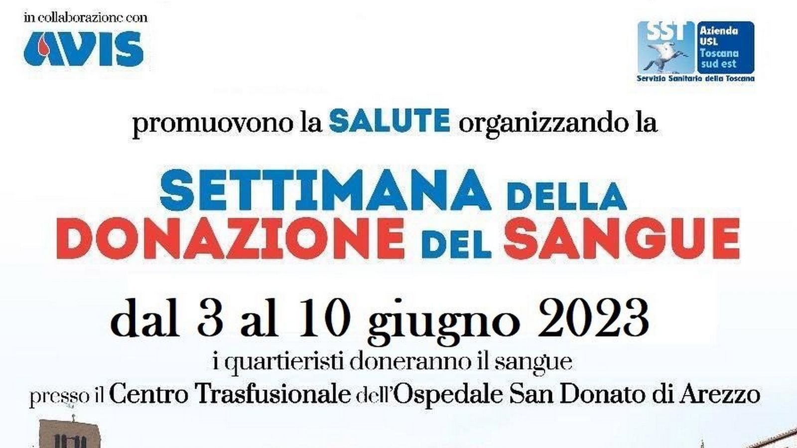 Dal 3 al 10 giugno i quartieristi doneranno il sangue presso il Centro Trasfusionale del San Donato. Il progetto, portato avanti da tempo dai quattro quartieri della giostra del Saracino in collaborazione con Asl Tse e l’associazione Avis comunale di Arezzo consiste nell’effettuare in questi giorni…