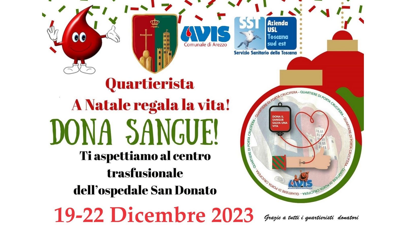 Come da tradizione, nei giorni prima di Natale, i donatori del nostro Quartiere faranno visita al Centro Trasfusionale di Arezzo per donare il sangue in segno di “auguri” e di solidarietà natalizia. Un esempio per tutti gli aretini perché di sangue c’è sempre bisogno. Ti aspettiamo al Centro Trasfu…