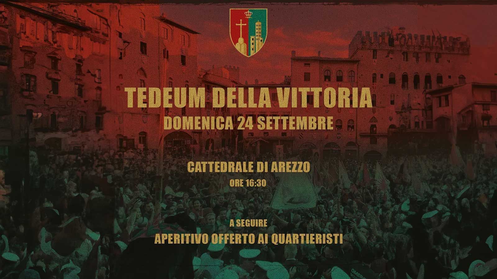 Sabato prossimo, 9 ottobre, il popolo rossoverde si recherà alle ore 17 nella Chiesa di Santa Maria della Pieve per il "Te Deum" di ringraziamento per la vittoria della 38a Lancia d'Oro conquistata in Piazza Grande nella CXL Giostra del Saracino.