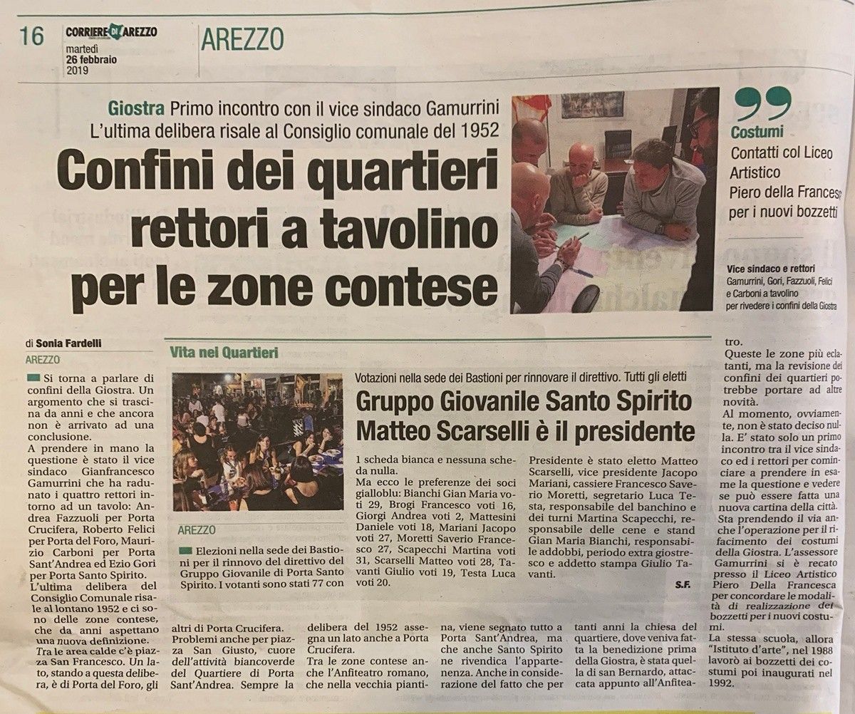 Confini dei Quartieri: Dopo 66 anni i Rettori si ritrovano per mettere mano alle zone contese dei territori. L'ultima delibera del Consiglio Comunale risale al 1952.